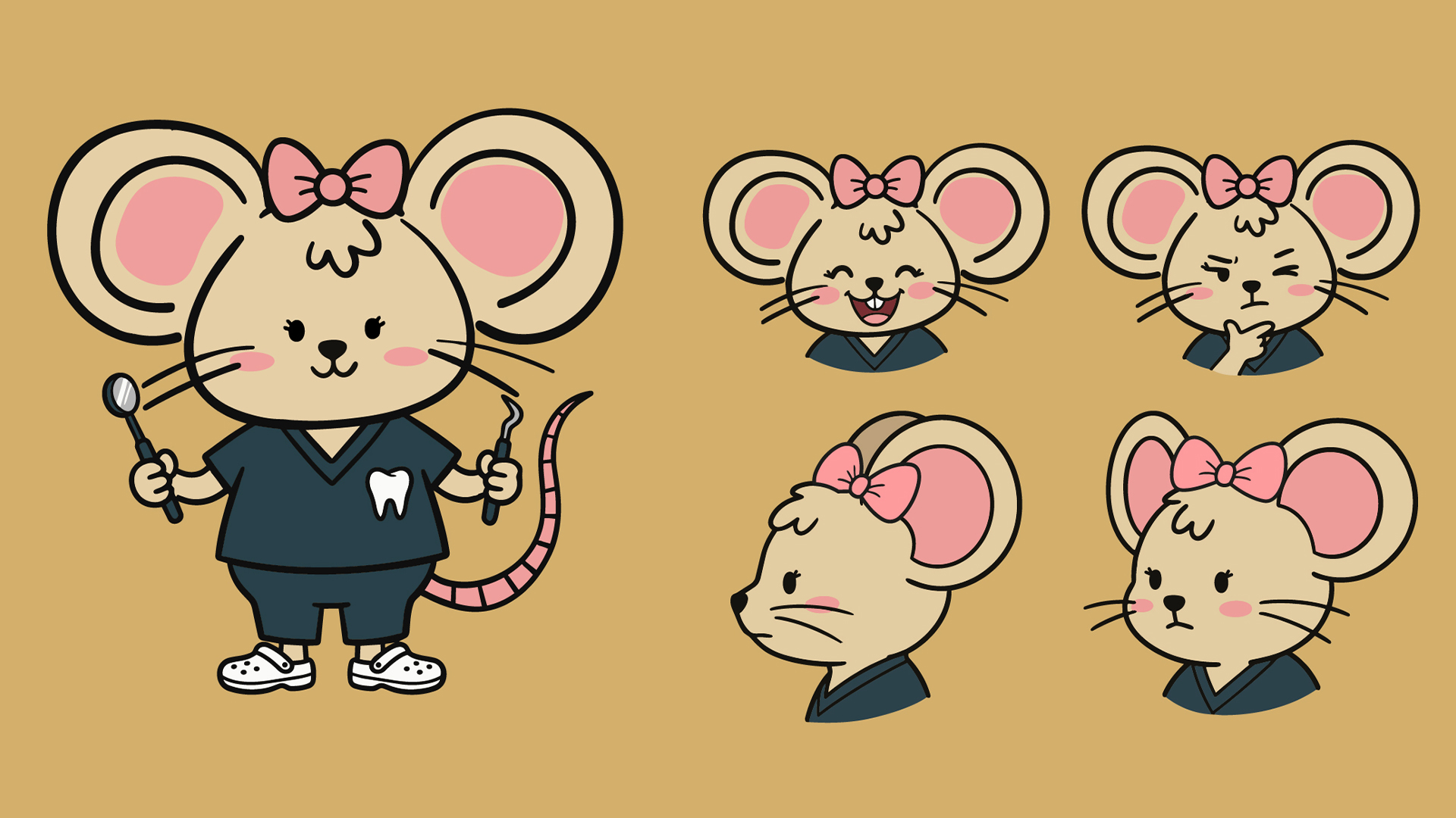 La ratoncita dentista, un guiño ingenioso a la figura tradicional del "Ratón Pérez" o "Tooth Fairy". Este personaje conecta instantáneamente con el público, eliminando las barreras del miedo y la ansiedad que a menudo se asocian con las visitas al dentista.